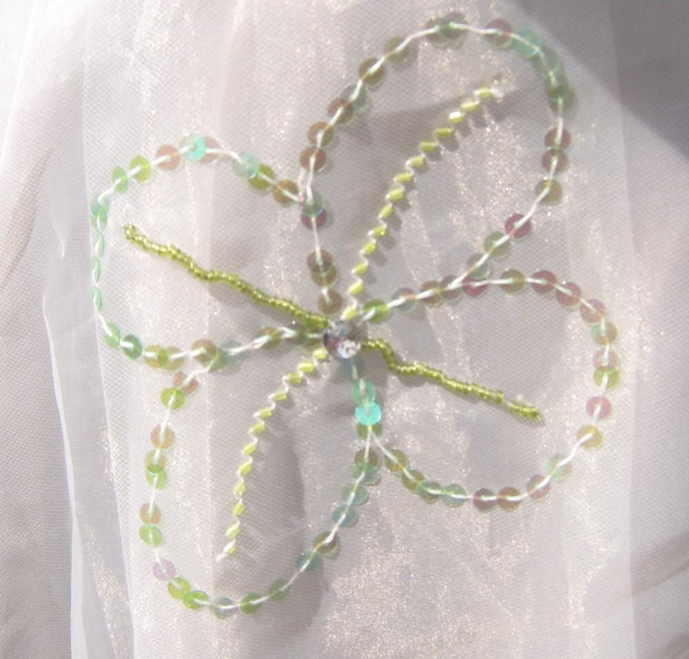 Das extravagante Kinderkleid wurde an den Trägern und am Vorderteil sparsam mit Pailletten verschönt.
