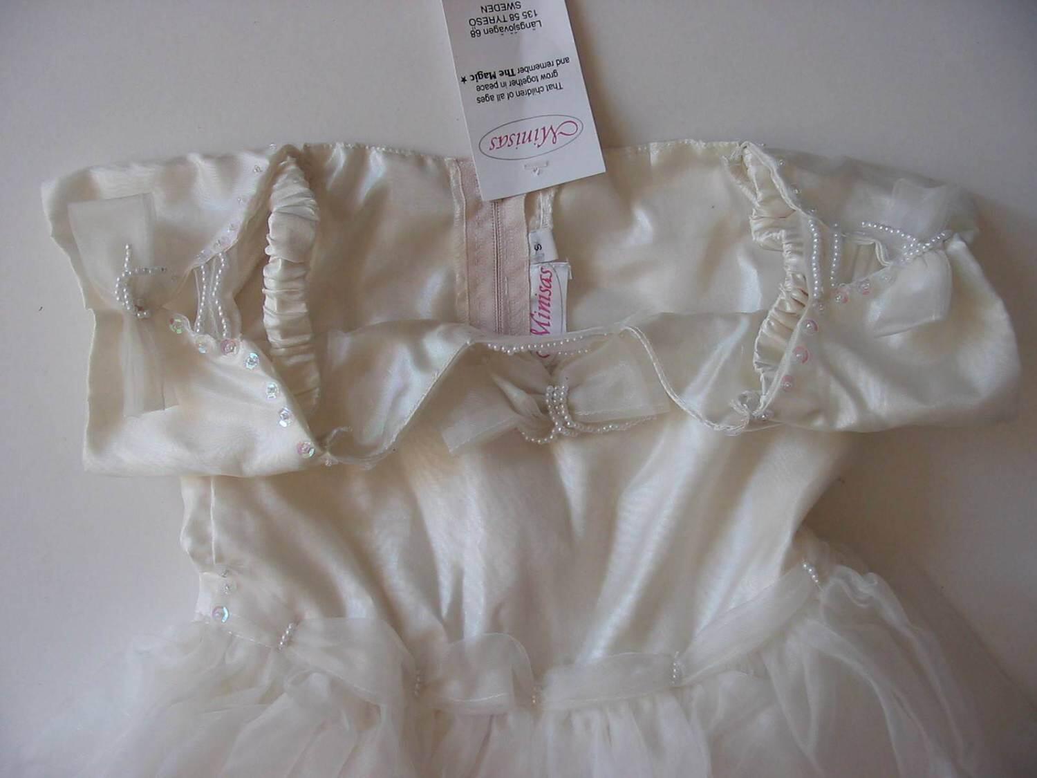 Die Puppe auf dem Foto trägt das Kleid in Größe 116.