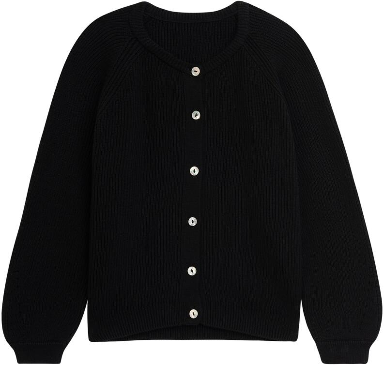 Eine kombifreundliche Strickjacke aus Patentstrick mit Raglanärmeln.