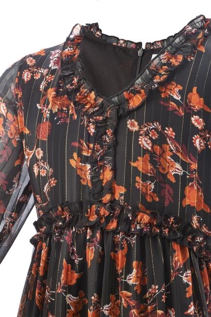 Die langen Ärmel enden mit einem Gummizug und einer schmalen Rüsche.