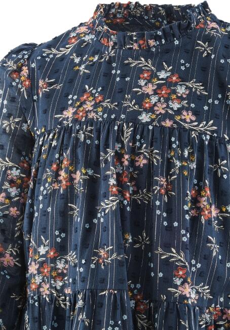 Der Halsausschnitt ist mit einer kleinen Rüschen versehen.