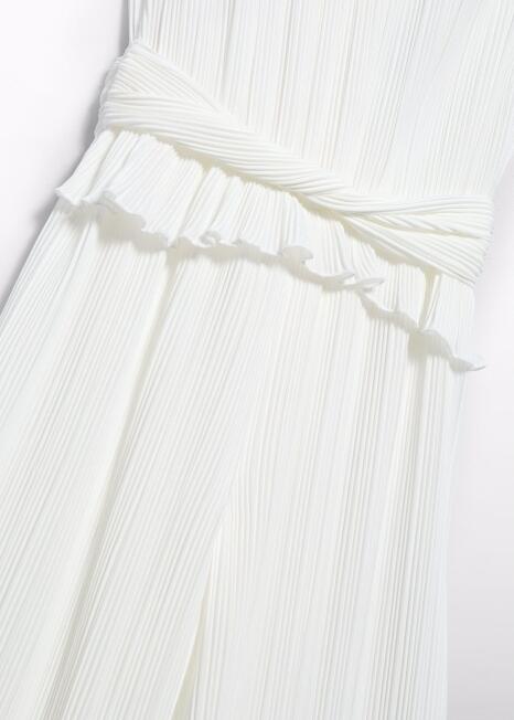 Das Oberteil ist allover mit halbtransparentem, bestickten Stoff überlegt.