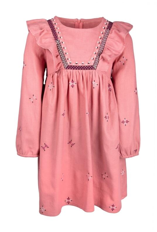 Happy Girls Mädchen Kleid mit Stickerei und Rüschen rosewood: