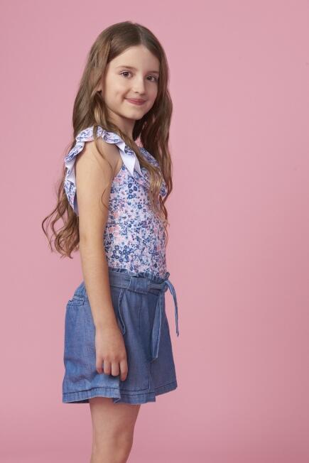 Kurzärmeliges Oberteil in zartem Farbton mit glitzernder Applikation.