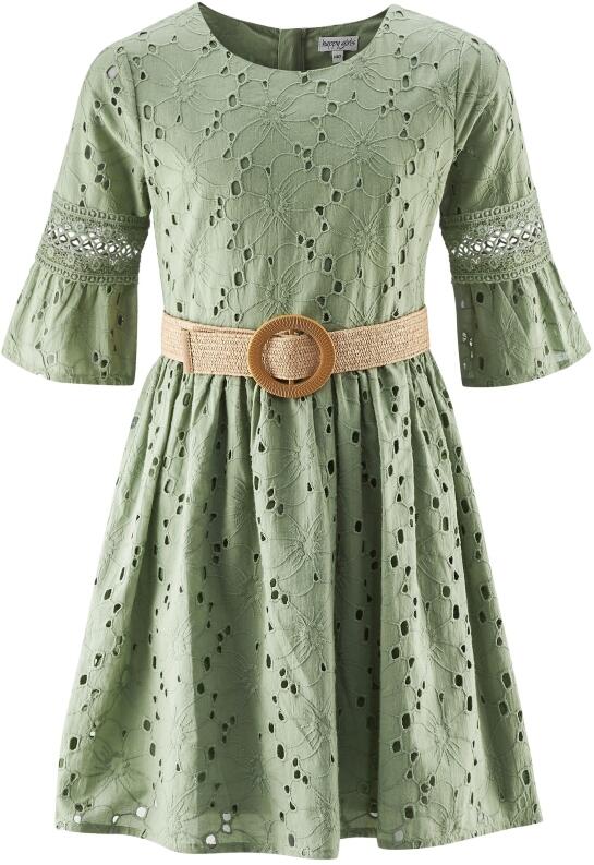 Happy Girls Teens Mädchen Kleid Lochstickerei oliv: