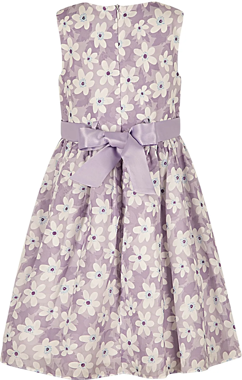 Rückwärtig können Sie mit den Bindebändern eine Schleife binden und somit die Weite des Kleides regulieren.