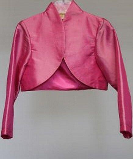 Dieser leicht glänzende Mädchenbolero wird offen getragen und ist komplett gefüttert.