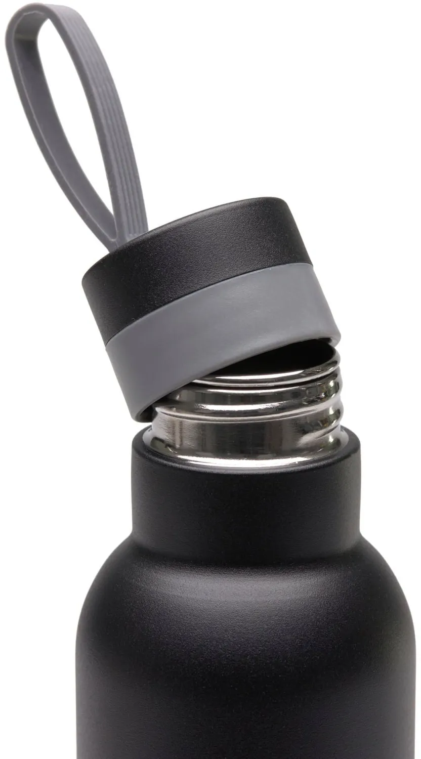 Coole Edelstahlflasche mit praktischer Silikonschlaufe.