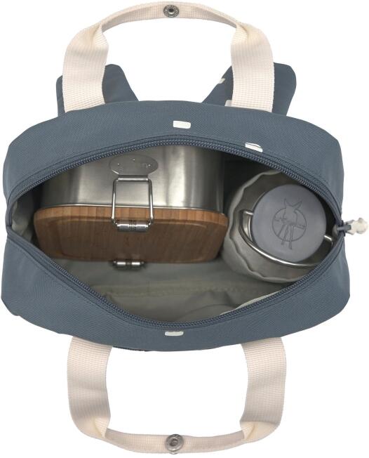 Der wasserabweisende Kinderrucksack hat ein Hauptfach, das mittels Reißverschluss geschlossen wird.