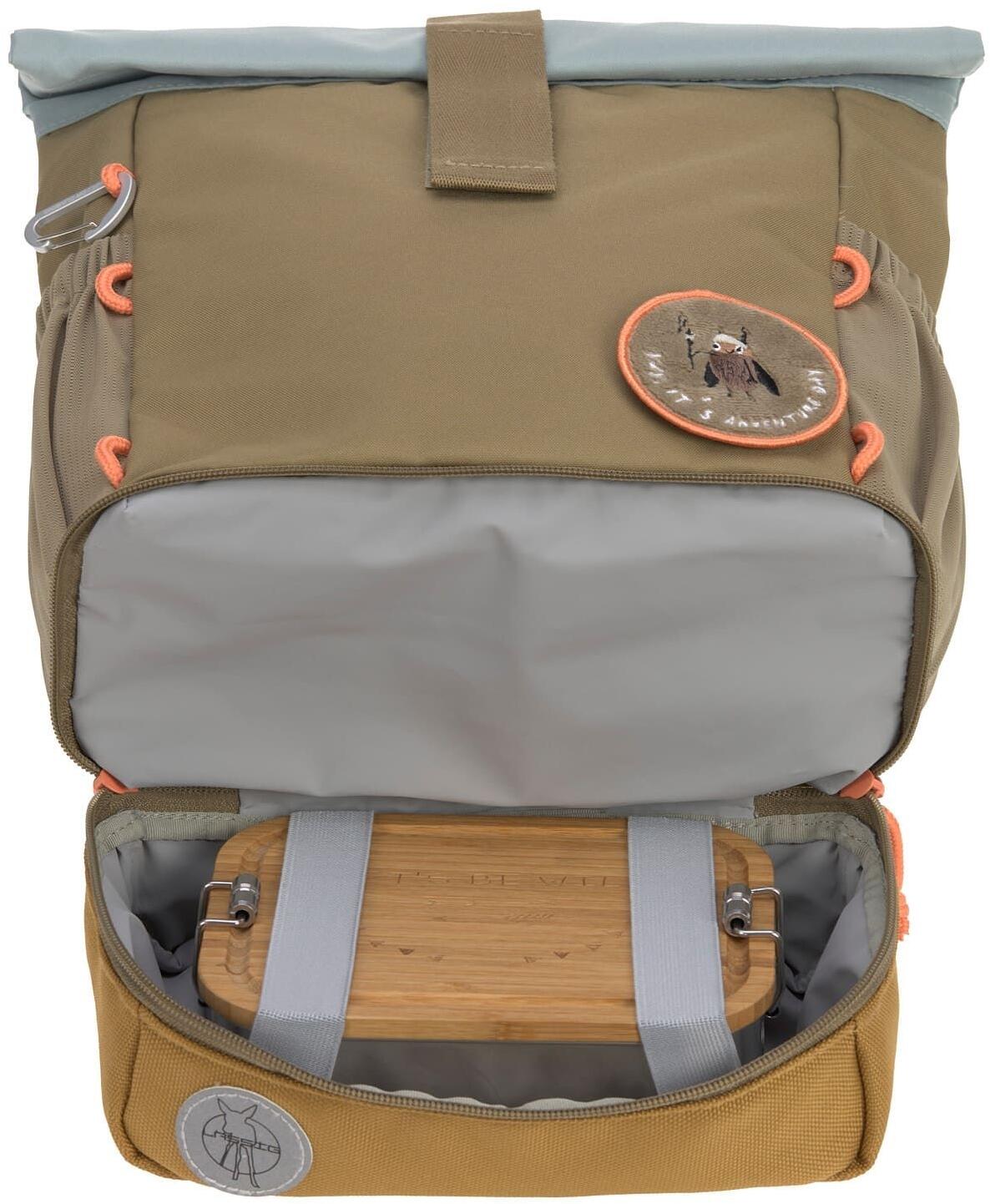 Im Hauptfach gibt es ein Namensschild und eine Einschubtasche für die Trinkflasche.
