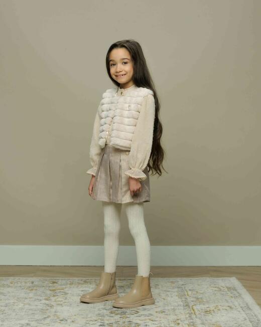 Die Kinderbluse wird hinten mit einem Knopf geschlossen.