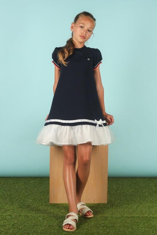 Le Chic Mädchen Kleid mit Tüllvolant blau: