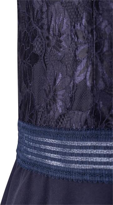 Es hat kurze Ärmel, einen kleinen, stylischen Stehkragen und wird mit einem rückwärtigen Reißverschluss geschlossen.