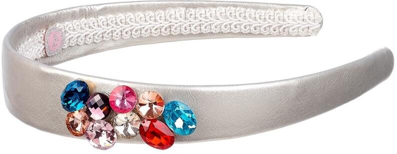 Der Kinderhaarreif ist mit silberfarbenem Material überzogen.