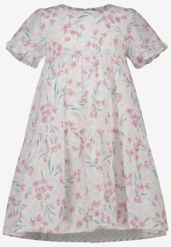 Das Mädchenkleid ist aus bedruckter Lochstickerei gemacht.
