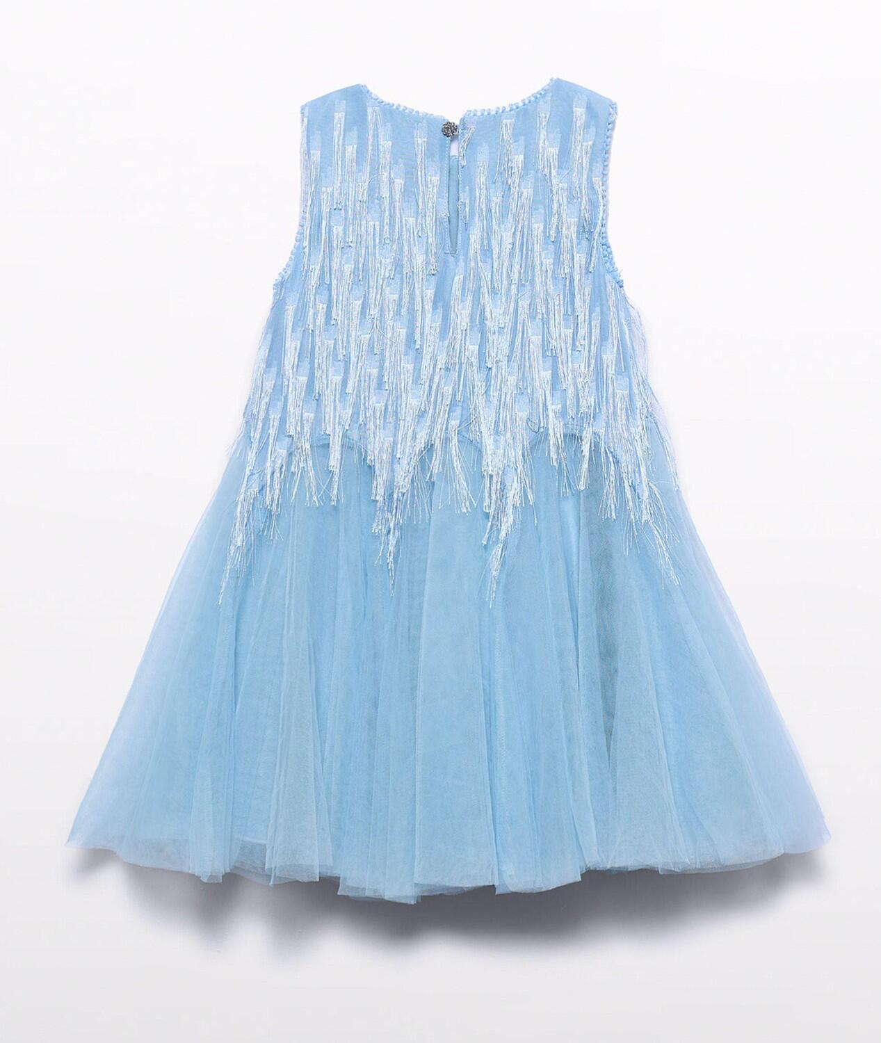 Das Kinderkleid ist gefüttert und verfügt über eine extravagante Rückenverarbeitung.