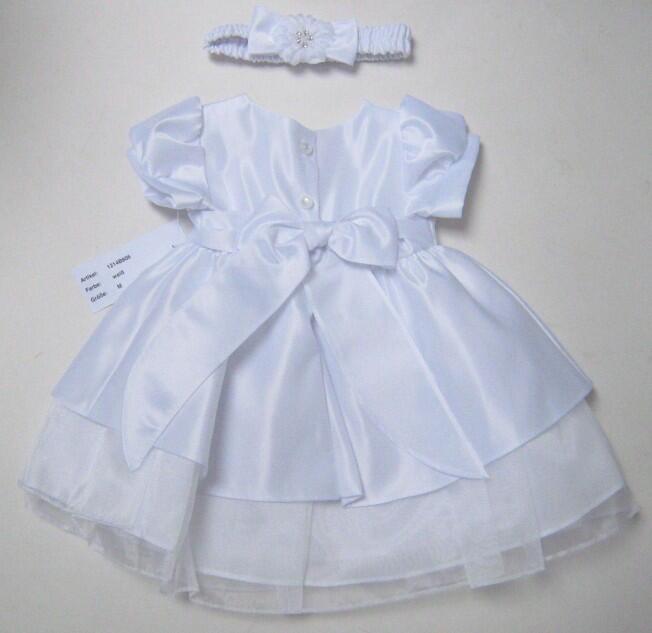 Das Kleid wird mit dem passenden Haarband sowie mit einer perlenverzierten, abnehmbaren Blüte geliefert.