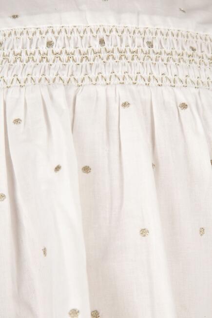 Das Oberteil ist ärmellos, der dreilagige Rock mit eingearbeitetem Petticoat schwingt weit.
